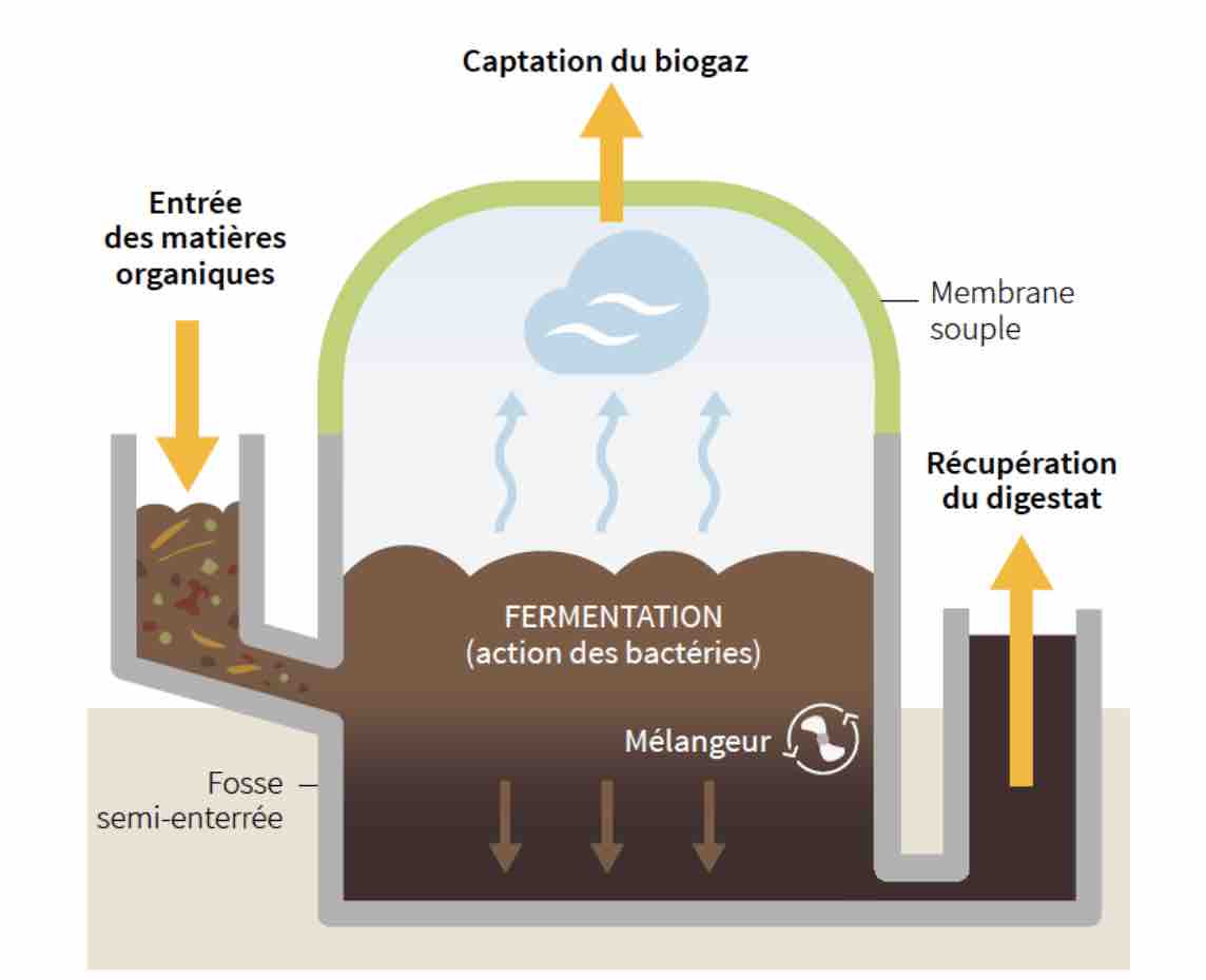 Pour produire son énergie, il recycle les excréments de ses bovins. Par un procédé de fermentation, le lisier se transforme en méthane nécessaire à l’alimentation des véhicules.