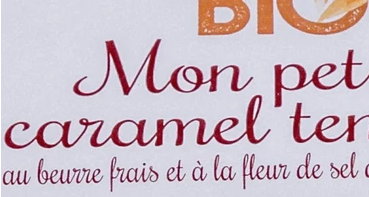 Ingrédients : sirop de glucose*, sucre de canne*, lait concentré sucré*, beurre (lait) frais* (10 %), poudre de lait*, sel de Guérande (0,8 %), fleur de sel de Guérande (0,3 %).